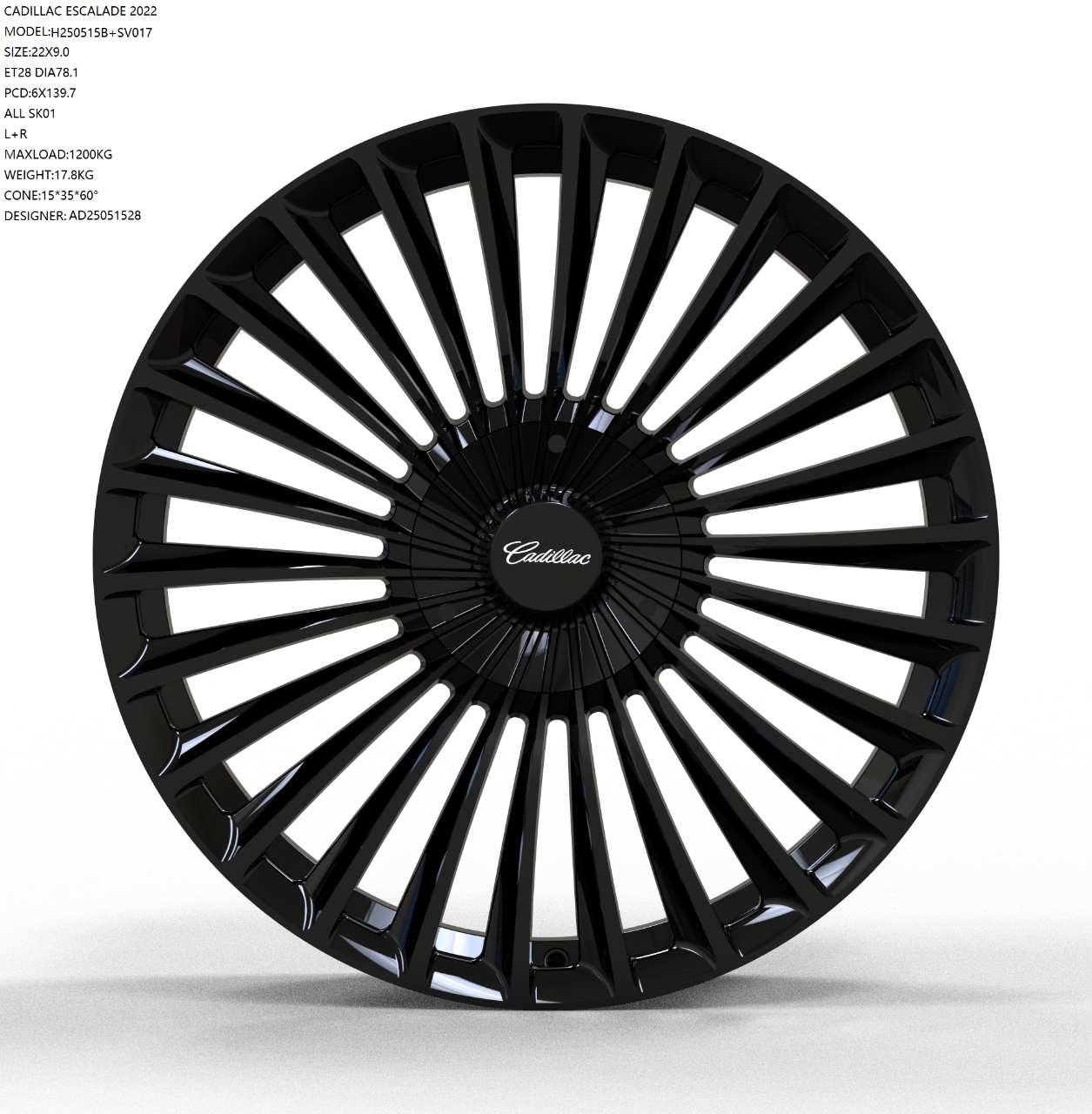 Кованые диски SKILL FORGED SV017 R22 J9 ET28 6x139.7 Dia 78.1 Черный глянец 1200кг нагрузка на диск на Cadillac Escalade