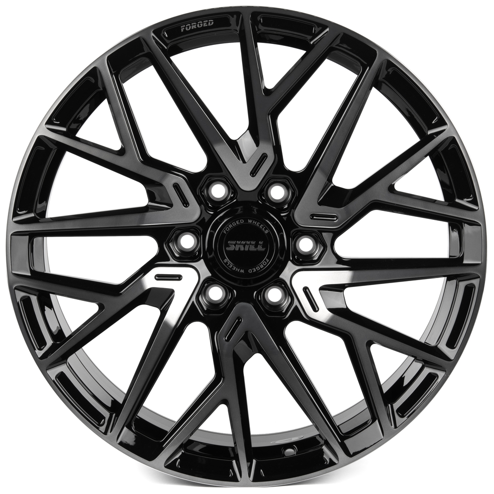 Кованые диски SKILL FORGED SV175 R20 J9 ET28 6x139.7 Dia 106.1 Черный глянец + полированные спицы